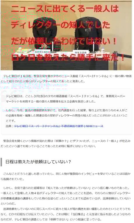 →会見「一般人とされた4名はディレクターの知人だったが依頼はしてない、ロケ日を伝えたら勝手に来たのだ!」