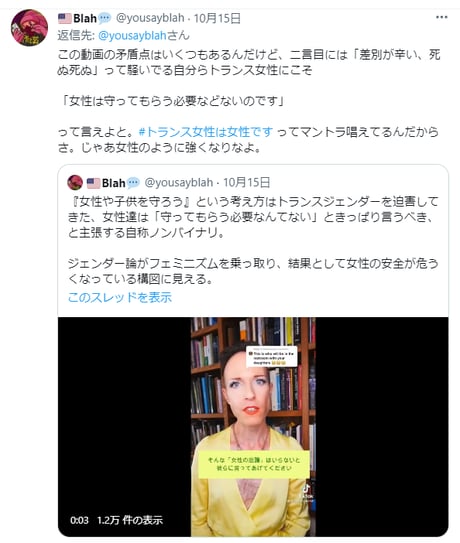 ポリコレとジェンダー平等で去勢された男性は、女性を守れない。奇しくも、上のノンバイナリがいうように「守ってもらう必要などない」と云えないことが、良く分かった。