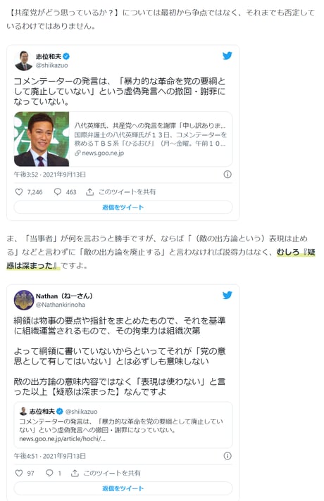 安倍政権や菅政権批判には、政権側の意見を入れる事など無いくせに、日本共産党からの批判には易々と応じて謝罪するダブルスタンダードが許しがたい。