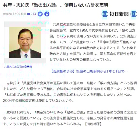 「共産党はまだ暴力的な革命を党の要綱として廃止していませんから」
