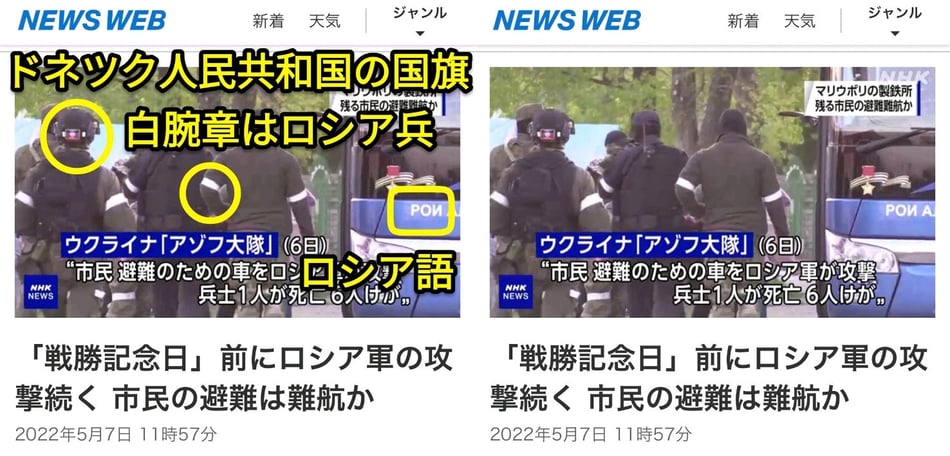 ウクライナ兵であるかのように錯誤させる報道