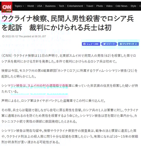 ウクライナもロシアも国際刑事裁判所(ICC)規定に加盟していないので、それを承知の上で指摘しますが、ICC規定という国際社会における多くの国々が支持している枠組みで考えるなら、戦争犯罪人を裁くのは、この場合ロシアであって、ロシアがそれをやらない場合に限りICCで訴追される仕組み。