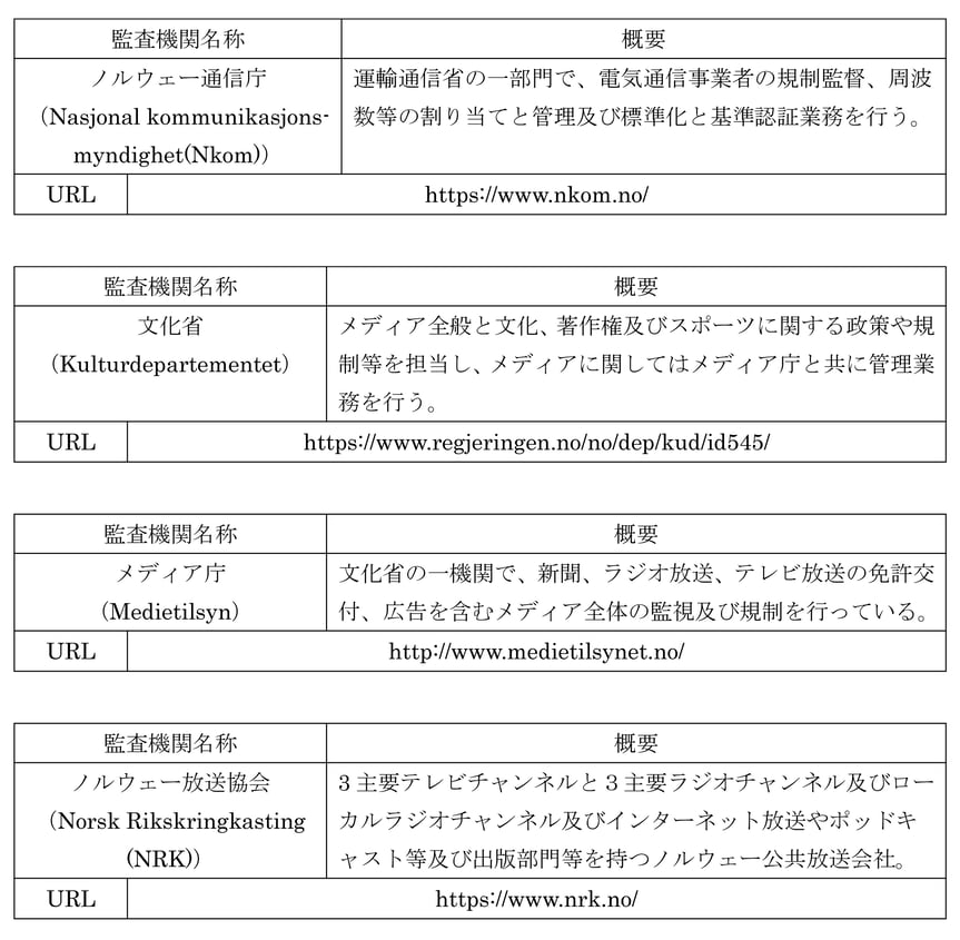 放送・視聴覚サービス法( 放送法(Lov om kringkasting og audiovisuelle  bestillingstjenester) (通称 放送法(kringkastingsloven))についての詳細は以下のWebサイトを参照